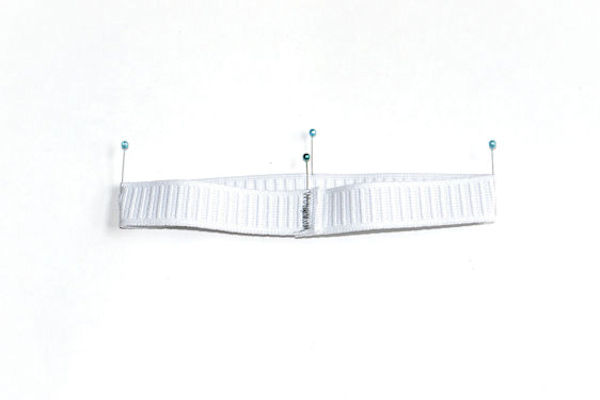 Next, the tube is opened and shifted so the two original pins are aligned in the center. Two new pins are placed on the left and right sides. The cuff has now been divided into 4 equal sections/quarters.