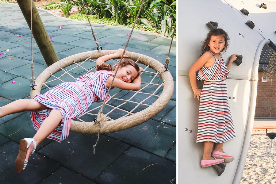 I had just made some new Starry Night PJs for my girls for Christmas, so when I realized that I needed another set for this blog post I decided to switch it up a bit. It was the perfect opportunity to do some jammies using the Aurora Raglan as I’ve been wanting to for the last while now. I spent a ridiculous amount of time looking through my stash for the right fabric combo and then decided to rather clean up my sewing room. Yup. “Squirrel!” Thank goodness I did that because in the bottom of my pile of fabric scraps I found this dress that no longer fits my girls. It paired so well with the black and white stripe scraps that I also found in that pile and the piece of solid black that was big enough for some capri length bottoms. Using up scraps makes me happy.
