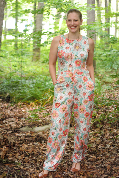 My own capri length romper is made from a DBP. It’s a custom fabric and is actually a bit more structured than other DBPs that I’ve used so the vertical hang wasn’t too bad, but I did need to remove an extra 3/4” from the rise. (This is above the 1/2” that I normally remove for my height.) I did not remove any extra length from the bodice and it’s very wearable, but next time I will likely remove 1/4” at the lengthen/shorten line in the bodice and only 1/2” from the rise to bring that band up a bit as well as shortening that rise. But that’s just a personal preference.