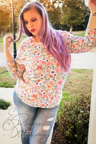 Let’s talk about hacks!! One of our testers tried something out for her daughter and we’re loving it. Some added grommets to the neckline and some vinyl on the sleeve and immediately this top has become unique. SO good. I can see others trying their own version of this and we recommend that you use the interfacing on the neckline facing so enforce that area for your grommets.