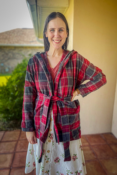Finally, let’s take a look at some of the gorgeous coats our testers created with the new full sleeve! First up are the up-cycles (such a great idea for a pattern that otherwise requires a larger amount of fabric):